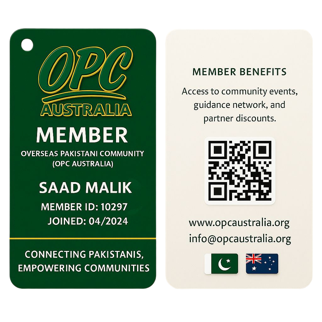 OPC Australia is a not-for-profit community platform built to unite, support, and celebrate the Pakistani diaspora across Australia. Whether you’re a student, professional, or new arrival, OPC is here to make your journey easier, happier, and more connected.